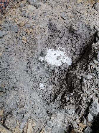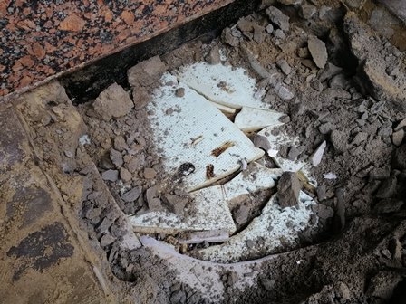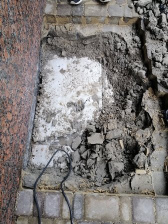 Разрытия проводились в 2-х местах, возле фундаментной части дома. Мы полностью разобрали слои и дошли до верхней части несущей плиты придомовой территории.