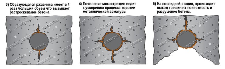 Если вода проходит сквозь бетон, то металлическая арматура внутри нее подвергается коррозии. В результате несущая способность плиты снижается.